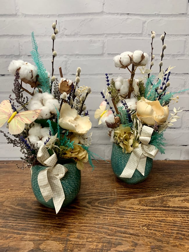 Trabajos ideales para regalar, encajan en cualquier ambiente. Arreglos florales de efecto silvestre y natural, con mucha durabilidad y para cualquier ocasión.